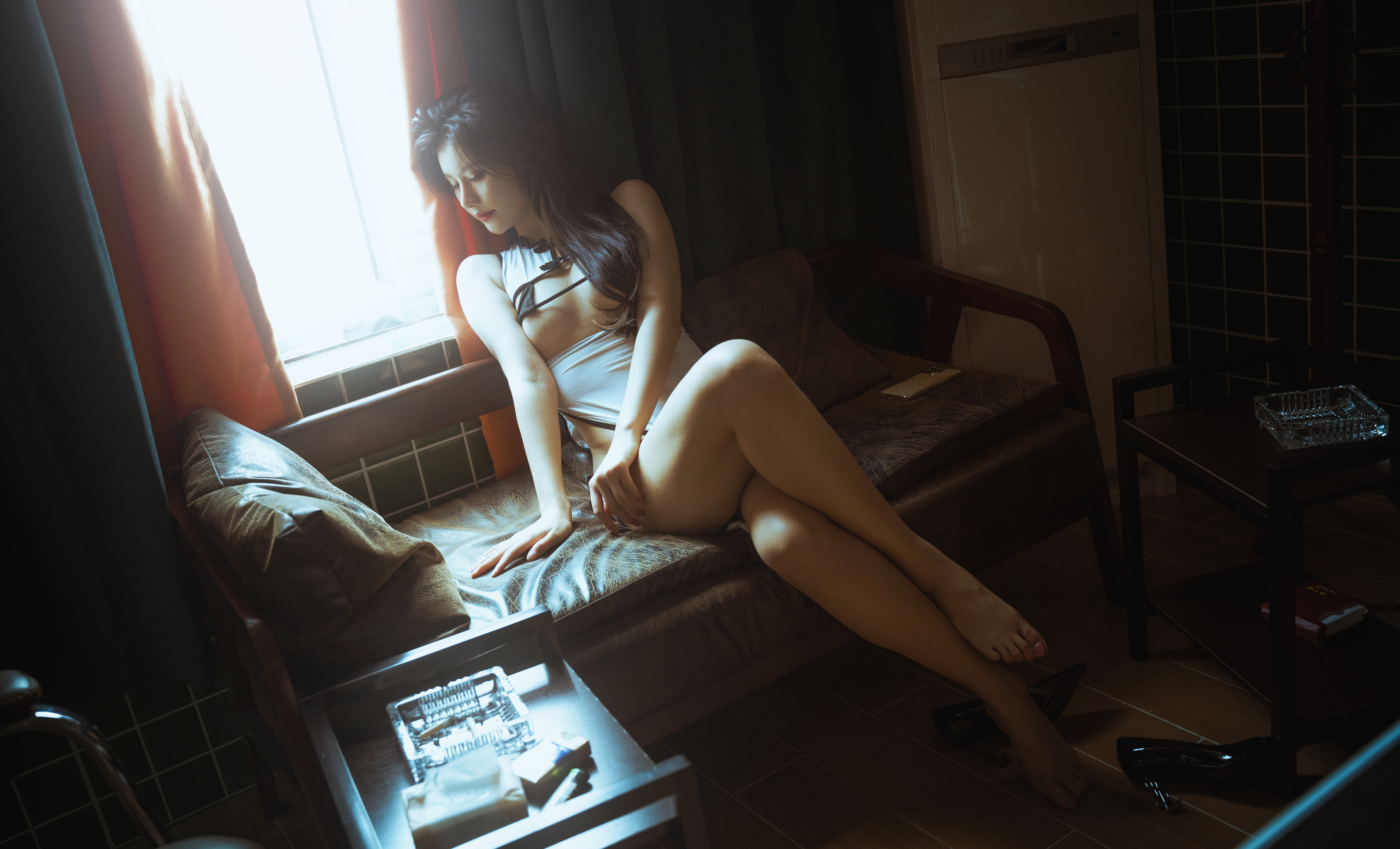 名模阿朱之高叉旗袍