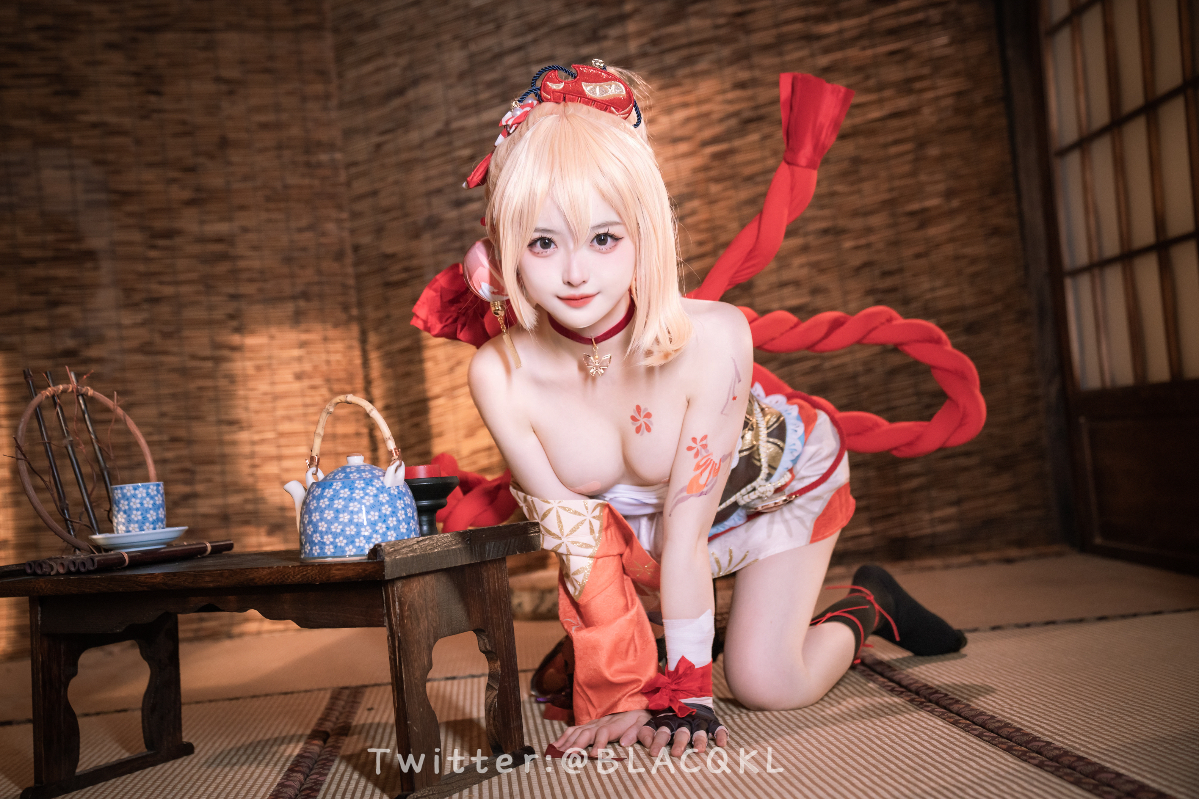 萌新推特00後露臉美少女▌白莉愛吃巧克力▌超美畫風Cos原神宵宮 可愛小蘿莉 三點全露又粉又嫩