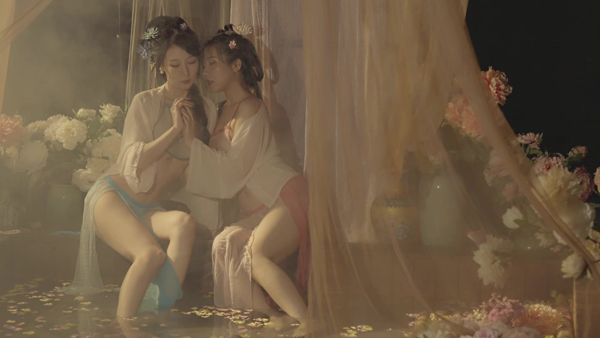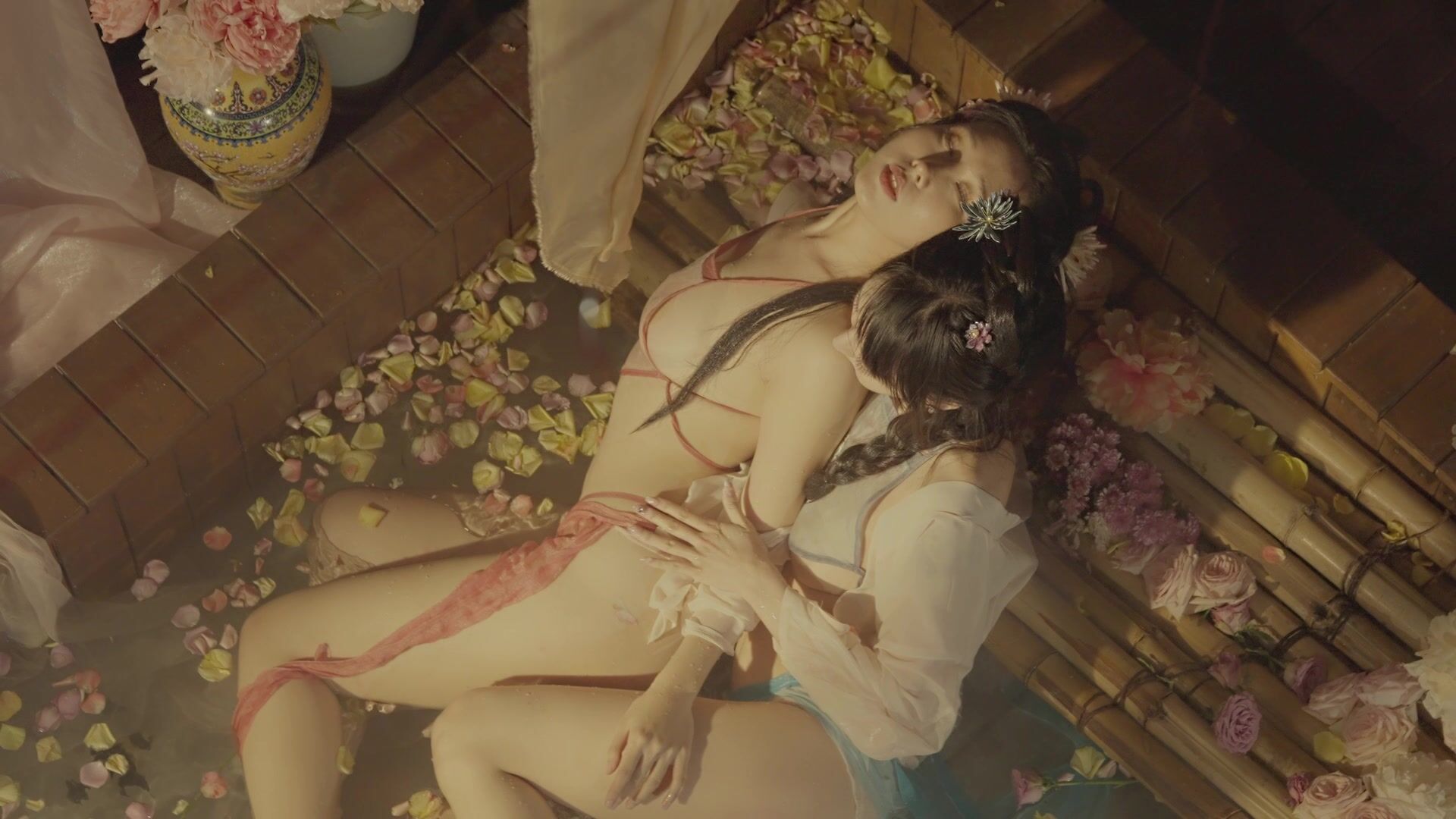 極品雙模網紅美少女火辣出鏡▌雲溪溪x奶桃▌古裝浴池嬉戲 性感肚兜誘人乳暈 濕身誘惑超寫實古代風